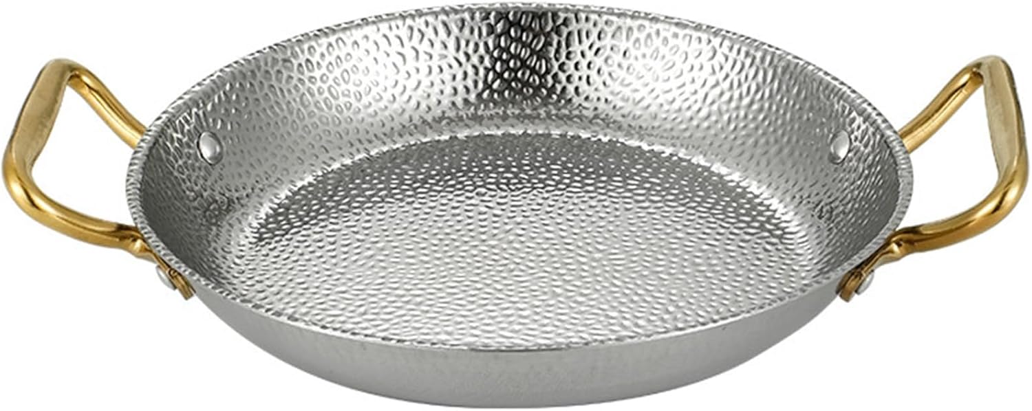 Specifications: Type: Spanish Paella Pan Material: 304 Stainless Steel Color: Gold, Silver Size: 22 cm, 24 cm, 26 cm, 28 cm, 30 cm, 32 cm Features: Non-stick, Uncoated, Hand-hammered, Dishwasher safe Application: Home, Kitchen, Restaurant, Party, Outdoor, Camping Capacity: 2-10 people Features: Paella pan with handles and smooth, wavy bowl edge for easy and safe cooking, made of food-grade 304 stainless steel, solid construction. Hand-hammered paella cooking pan, non-stick, uncoated, frying pans, Spanish paella pan, for home or restaurants. Frying pans are equipped with Double-riveted, sturdy steel handles for a comfortable grip while cooking.Stainless steel pan with good heat conductivity, long lifespan, and easy cleaning and maintenance.Suitable for wood fires, gas, ovens, induction, and gas burners. Enjoy your celebrations with family or friends.Package includes:1 x Spanish paella pan
