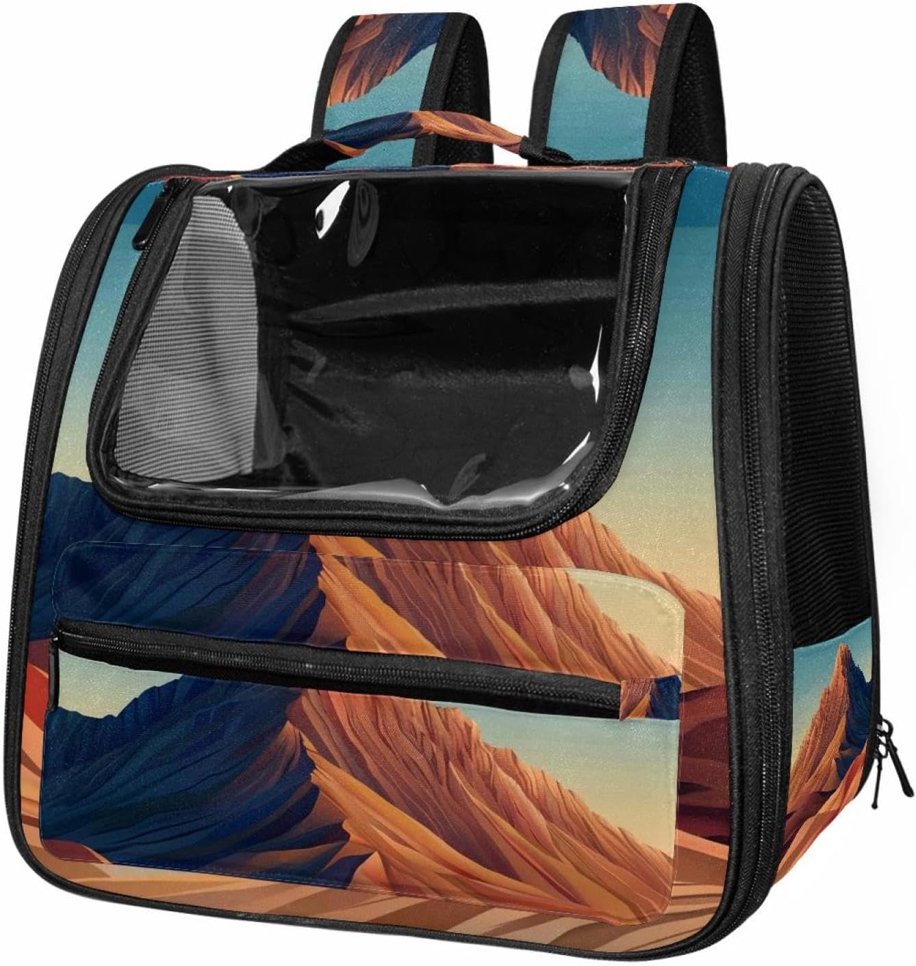 Well made: Cat Backpack Carrier is made from 900D oxford fabric, pp webbing, velvet, nylon, which is very sturdy, environmentally friendly and breathable. Not easily scratched by pet’s claws, pet backpack carrier is SAFETY & ANTI-SCRATCH. The back padding will give you a comfortable and breathable experience. Ventilated Backpack: With a breathable window in the front, this pet backpack allows cats to enjoy the sun without feeling stuffy. There are two side pockets and one big front pocket, and you can take foods or toy for your kitten pet. It is big enough for cat to turn around, and there are side pockets and hook holes, you will enjoy the greatest convenience when taking your cat out. Perfect size: Cat carrier is 15.75x9.84x13.78in/40x25x35cm. Fits most small/medium sized cat, dog, and pet. Quality fleece bed provide a comfortable place for your pet. Lightweight and easy to carry to all places. Built-in harnesses keep your naughty friends from escaping. Removable cosy mat for easier cleaning and let your pet enjoy it inside. Easy to carry: The adjustable shoulder strap of pet carrier bag help you hands-free carrying and makes it the most safe and convenient pet carrier bag for your travel. Seat belt design provide pets with safety protection throughout the trip. Pad protection keep your pets comfortable during travel. Unique Design: Innovative inside graphic design gives you a stereoscopic 3D visual experience. You also send us the photos you interest to make your unique dog or cat carrier. Pet bag is also a amazing gift for pet lover.