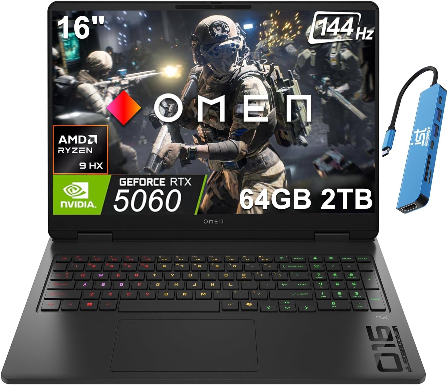 | BuiltIn Media | 230W AC Adapter with Power Cord, 7 in 1 USB hub by IST Computers, HP OMEN 16 Gaming Laptop, User Manual |