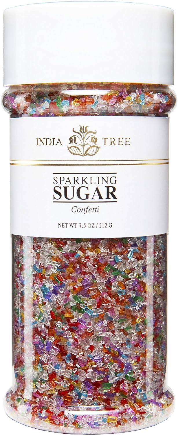Add a touch of dazzling sweetness and noticeable texture to your creations, especially your festive holiday treats, with India Tree White Sparkling Sugar. This generous 3.4 lb canister contains large grain, coarse, shimmering crystals of pure white sugar, perfect for adding significant visual appeal and a delightful crunch to your baked goods, desserts, beverages, and holiday decorations. These large, radiant sugar crystals don't dissolve easily, making them ideal for decorating cookies, cakes, muffins, scones, and all your seasonal specialties. Sprinkle them on top before baking to create a beautiful, glistening finish that catches the light and offers a satisfying texture, perfect for Christmas cookies, Hanukkah gelt, Easter cakes, and more. You can also use them to rim cocktail glasses for an extra touch of sparkle and a pleasant sugary sensation during your holiday gatherings. India Tree White Sparkling Sugar with its distinct large grain is a simple yet effective way to elevate your culinary and holiday decorating presentations. The convenient canister ensures easy storage and dispensing, keeping your sparkling sugar fresh for all your decorating needs, year-round and especially during the festive seasons. Bring a touch of magic and noticeable texture to your kitchen with this versatile and visually stunning sugar.