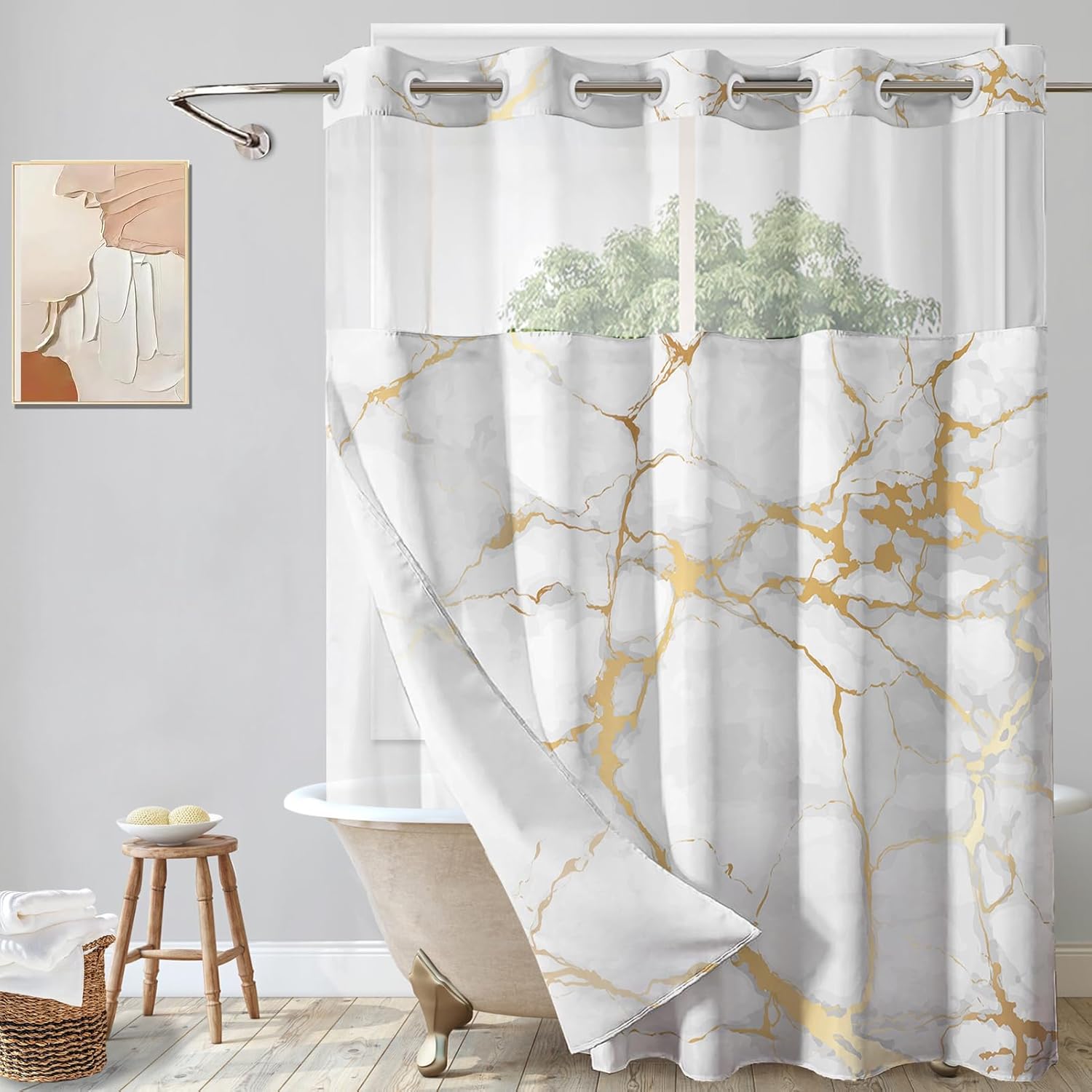 Easy Installation: No hooks required! This curtain features innovative built-in hanging rings that effortlessly slip onto your shower rod, saving you time and hassle during setup