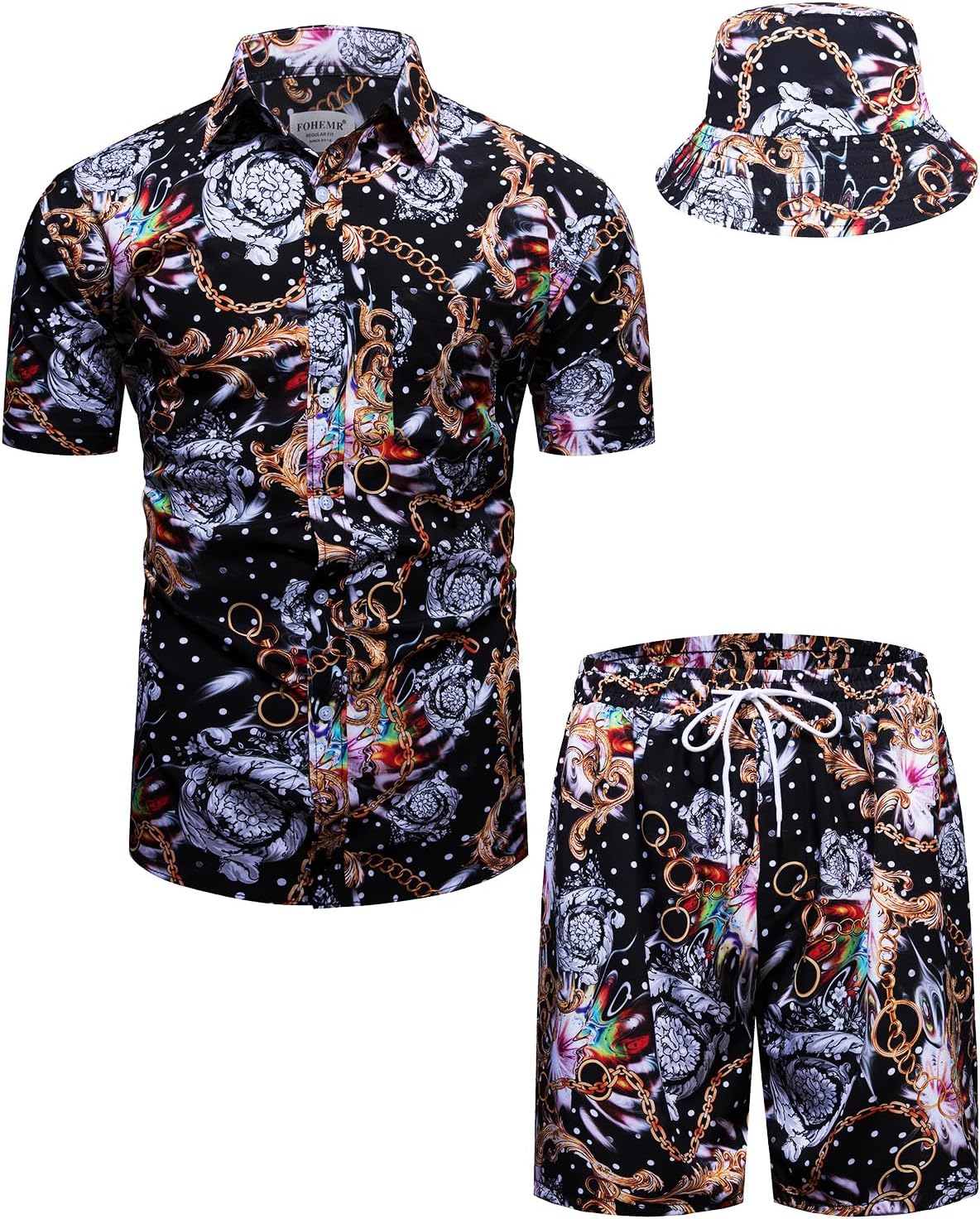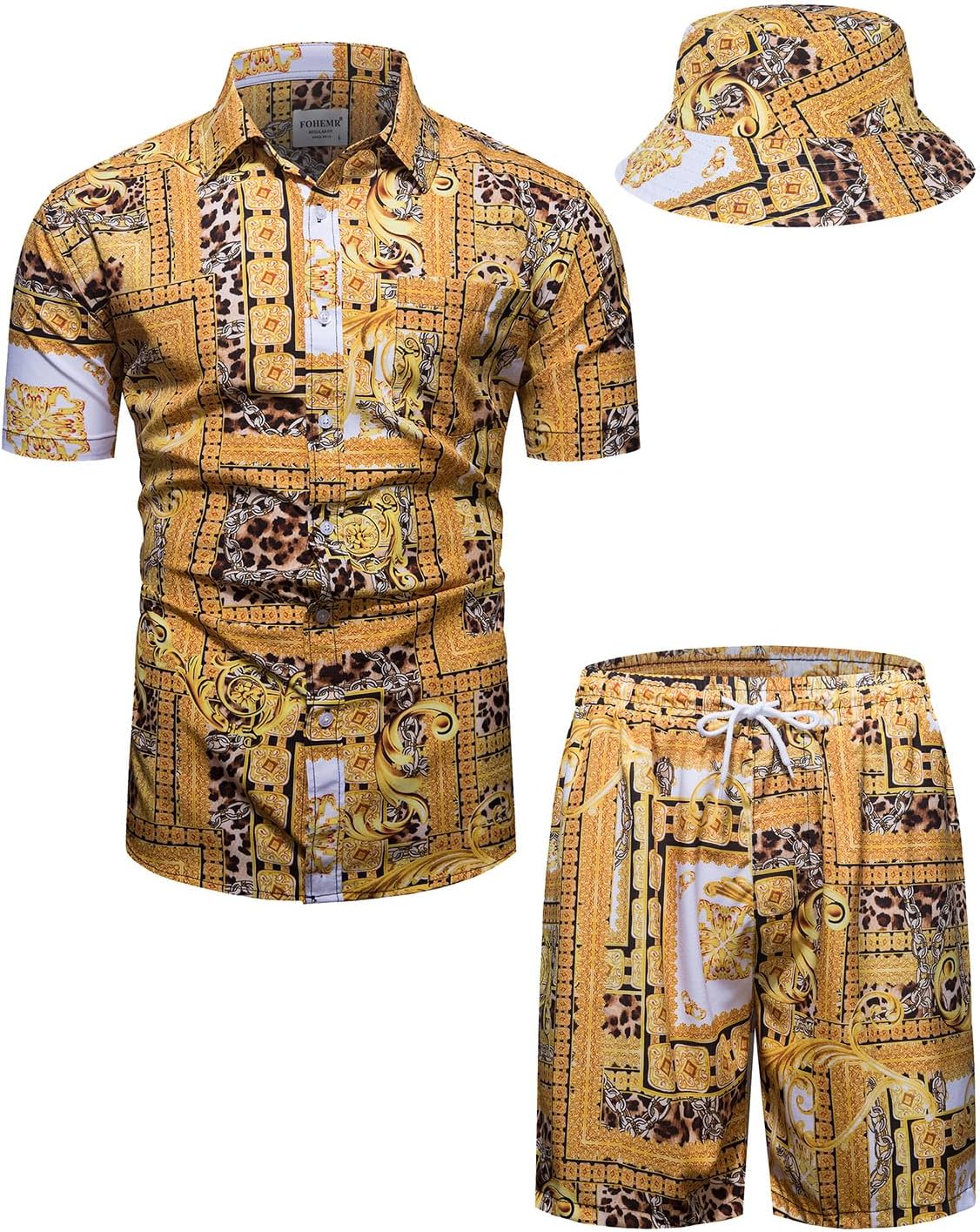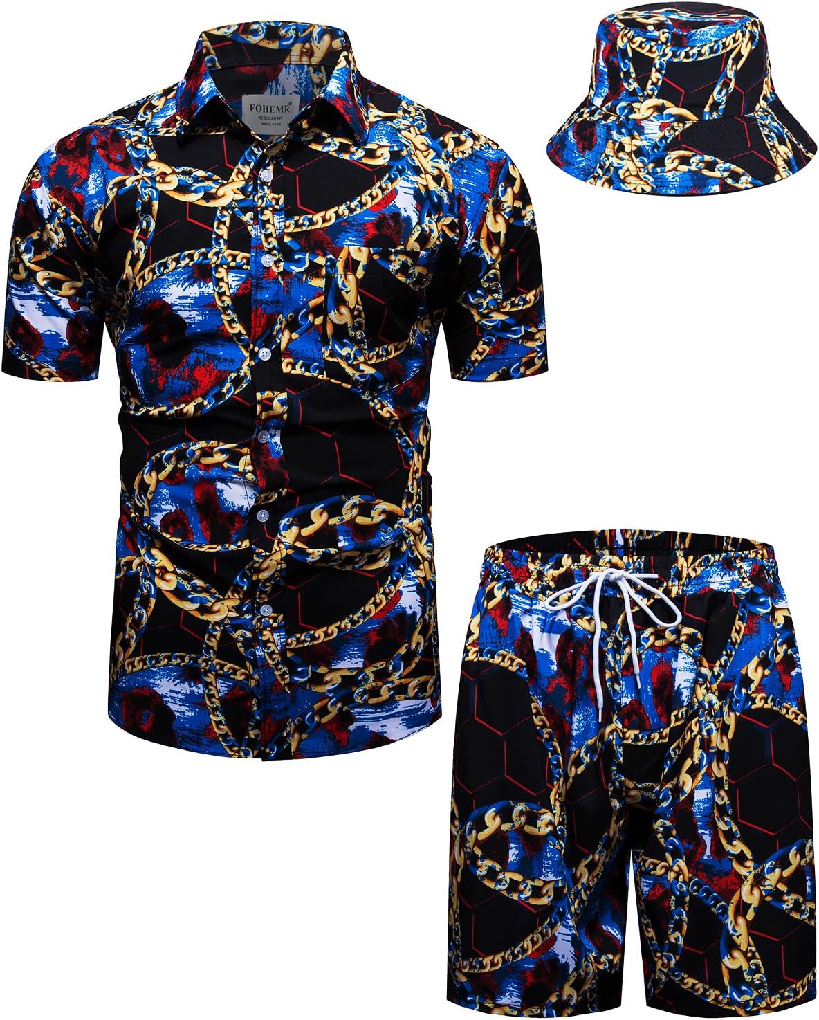 | Style | Loose Fit, Button-down, Short Sleeve Shirt With Pockets and Elastic Waist Drawstring Shorts Baroque Chain Print Pattern |
