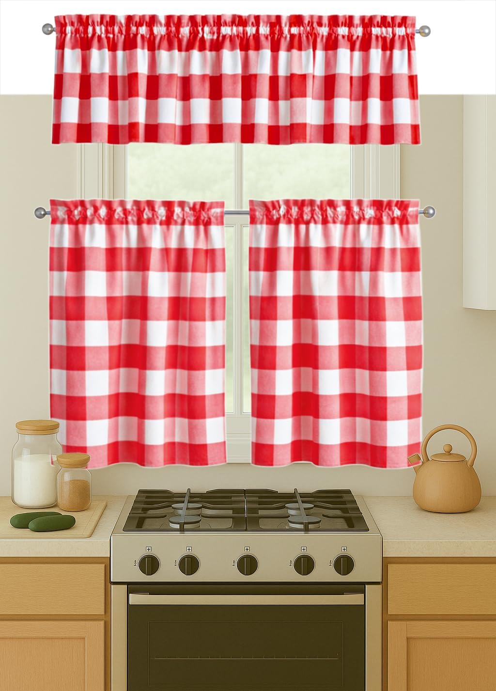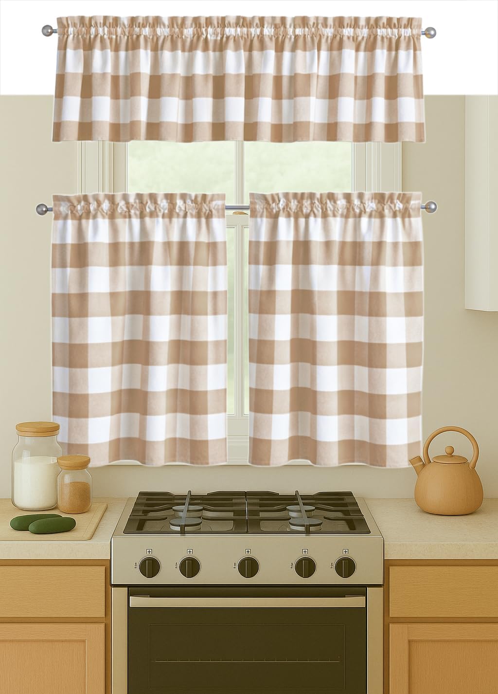 Enhance the aesthetic appeal of your kitchen, living room, or den with the Native Fab 3 Pieces Window Curtain Tiers and Valance Set, designed to bring a touch of farmhouse vintage charm to your home decor. This set comprises two tiers and a coordinating valance, all crafted with precision and style in mind.Crafted from 100% cotton fabric, these curtains effortlessly blend classic elegance with everyday functionality. The cotton material not only offers a sophisticated drape but also guarantees long-lasting durability. Elevate the ambiance of your space with these timeless curtains that are both beautiful and practical.Featuring a convenient rod pocket construction, these curtains require no hooks or curtain rings. They effortlessly slide onto your preferred curtain rod, making installation a breeze. The rod pocket design ensures a snug fit and a seamless, polished look when hung.This set includes all three pieces, providing you with added value and a complete window dressing solution. You'll receive two tiers to cover the lower portion of your window and a matching valance to adorn the top. This cohesive ensemble creates a harmonious and visually appealing window treatment.For added convenience, these curtains are machine washable, allowing for easy care and maintenance. Keep them looking fresh and pristine with minimal effort, so they can continue to enhance your living space for years to come.Elevate your home decor effortlessly with the Native Fab 3 Pieces Window Curtain Tiers and Valance Set. Whether you're aiming for a farmhouse-inspired kitchen or a cozy living room ambiance, these curtains are the perfect choice to infuse classic elegance and everyday functionality into your space. Add a touch of vintage charm to your home today!