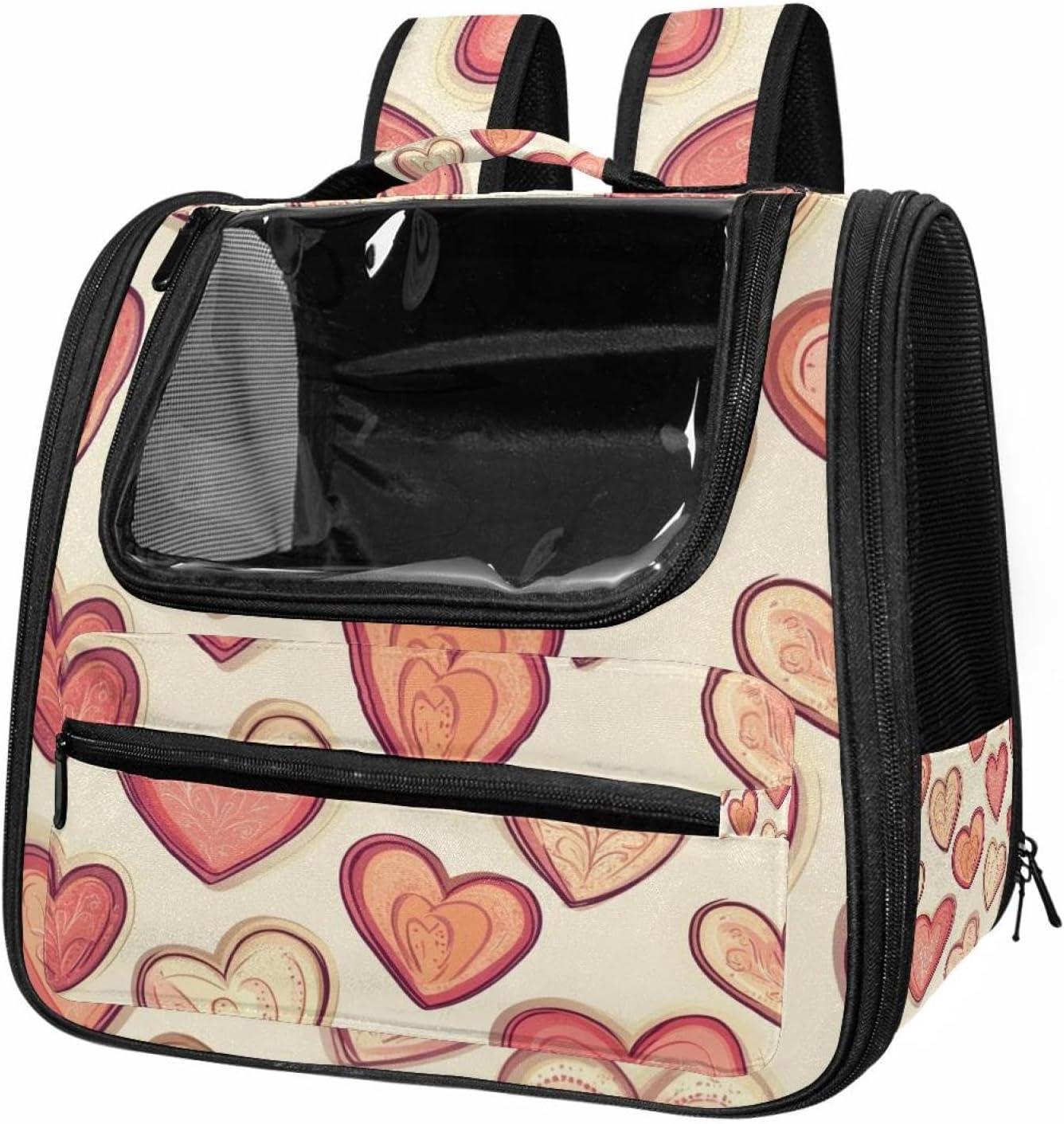 Well made: Cat Backpack Carrier is made from 900D oxford fabric, pp webbing, velvet, nylon, which is very sturdy, environmentally friendly and breathable. Not easily scratched by pet’s claws, pet backpack carrier is SAFETY & ANTI-SCRATCH. The back padding will give you a comfortable and breathable experience. Ventilated Backpack: With a breathable window in the front, this pet backpack allows cats to enjoy the sun without feeling stuffy. There are two side pockets and one big front pocket, and you can take foods or toy for your kitten pet. It is big enough for cat to turn around, and there are side pockets and hook holes, you will enjoy the greatest convenience when taking your cat out. Perfect size: Cat carrier is 15.75x9.84x13.78in/40x25x35cm. Fits most small/medium sized cat, dog, and pet. Quality fleece bed provide a comfortable place for your pet. Lightweight and easy to carry to all places. Built-in harnesses keep your naughty friends from escaping. Removable cosy mat for easier cleaning and let your pet enjoy it inside. Easy to carry: The adjustable shoulder strap of pet carrier bag help you hands-free carrying and makes it the most safe and convenient pet carrier bag for your travel. Seat belt design provide pets with safety protection throughout the trip. Pad protection keep your pets comfortable during travel. Unique Design: Innovative inside graphic design gives you a stereoscopic 3D visual experience. You also send us the photos you interest to make your unique dog or cat carrier. Pet bag is also a amazing gift for pet lover.